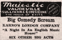 Advertisement. „Majestic.“ (...) „Big Comedy Scream. Karno‘s