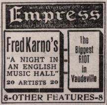 Advertisement. „Empress. Fred Karno´s A Night in an English