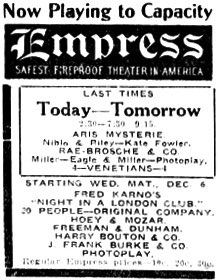 (...) „Photoplay. Regular Empress prices 10c. 20c, 30c.“