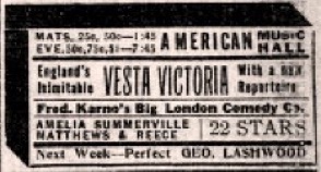 Advertisement. „American Music Hall.“ (...) „Fred. Karno´s Big