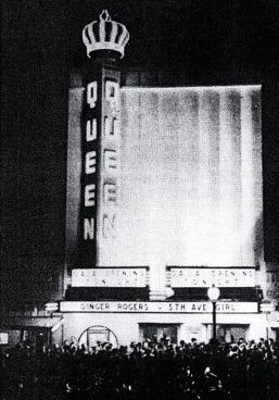 & Queen (before Crystal) Theatre, exterior by night, marquee