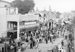 Zirkus Busch Kino mit Kutsche und Passanten