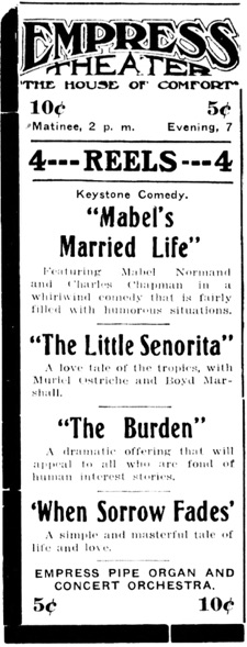 A side-splitting Keystone comedy, Mabel‘s Married Life, will