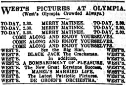 Advertisement. „WEST‘S PICTURES AT OLYMPIA