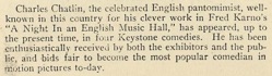 CHAS. CHAPLIN our new comedian, who up-to-date has only