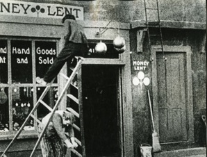 Pfandleihe. Chaplin, der Gehilfe. Henry Bergman, der
