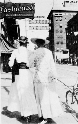 Two women, walking down 12th Street arm in arm to Loew‘s Empress, July 5, 1915, Kansas City Public Library