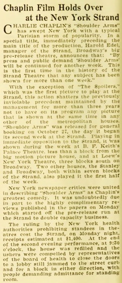 Charlie Chaplin‘s Shoulder Arms has swept New York