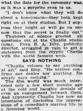 Editorial content. „Chaplin WEDS MILDRED HARRIS