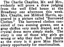 Mrs. Chaplin, nee Mildred Harris, appeared