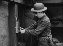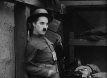 & Charlie Chaplin, comedy star of the „movies,“ making his first