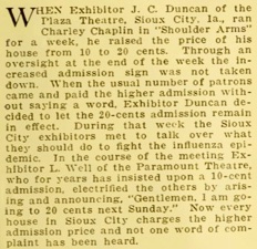 Sioux City, Ia., ran Charley Chaplin´s Shoulder Arms for a week,