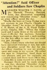 Manager Davis said he made enough in one day, showing „Shoulder Arms,“ to pay for the picture for the rest of the