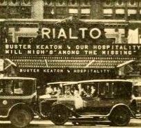 Rialto, exterior by day, marquee Buster Keaton in Our Hospitality, New York