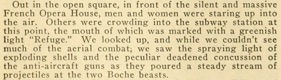 of German raiding airplanes, exploding shells and