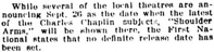 „Shoulder Arms,“ will be shown there, the First National states