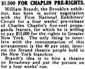 & $1,500 FOR CHAPLIN PRE-RIGHTS.