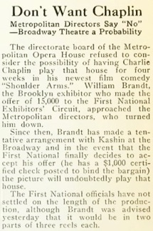 for a four weeks‘ pre-release of Charles Chaplin‘s five-reel