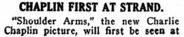 Shoulder Arms, the new Charlie Chaplin picture, will first
