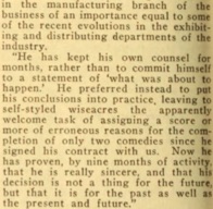 His Production Plan the Best to Insure Perfect Comedies“ (...)