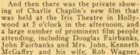 The first showing took place at the Iris Theatre