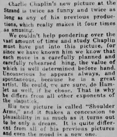 Charlie Chaplin‘s new picture at the Strand is twice as funny