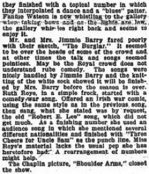 The Chaplin picture, „Shoulder Arms,“ closed the show.