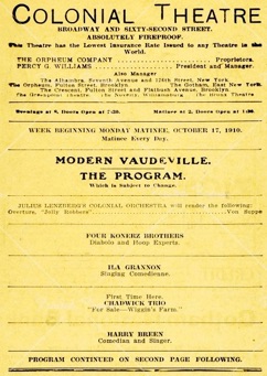 Colonial Theatre, 1887 B‘way (near 62nd Street), New York.
