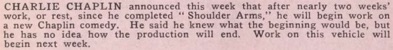 Arms,“ he will begin work on a new Chaplin comedy. He said
