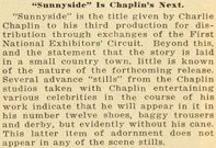 & „Sunnyside“ Is Title of Chaplin‘s Next