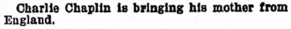 „Charlie Chaplin is bringing his mother from England.“