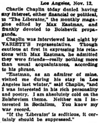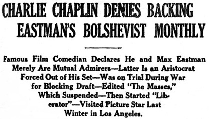 Editorial content. „Charlie Chaplin Denies Backing