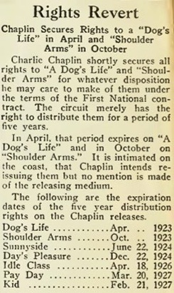 Chaplin Secures Rights to a Dog‘s Life in April and