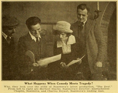 Blache, Nazimova´s director, mustacheless Chaplin, Nazimova,