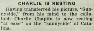 to the celluloid, Charlie Chaplin is now resting ,at ease‘