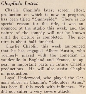 in Chaplin‘s Shoulder Arms, has been ill this week