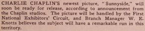 & CHARLIE CHAPLIN‘S newest picture, „Sunnyside,“