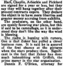 Hart, Chaplin, Arbuckle and Pickford Sign for