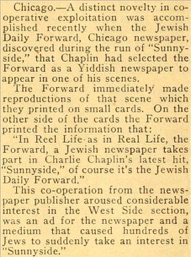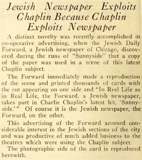 Editorial content. „Jewish Newspaper Exploits Chaplin