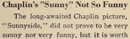 „Chaplin‘s ,Sunny‘ Not So Funny