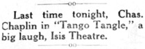 Advertisement. „Last time tonight, Chas. Chaplin in Tango