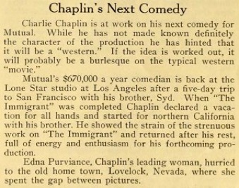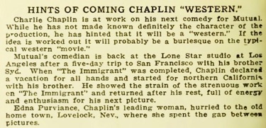 Editorial content. „Hints of Coming Chaplin ,Western.‘