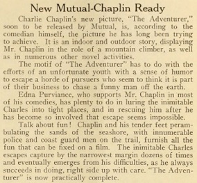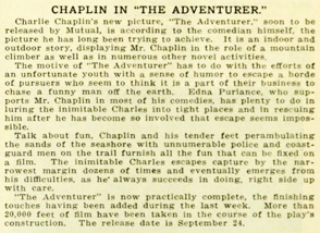Charlie Chaplin‘s new picture, The Adventurer, soon to be