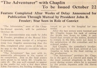 & Exhibitors to get New Chaplin „Adventurer“ Feature on Oct. 22