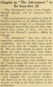 & Chaplin in „The Adventurer“ to Be Seen Oct. 22