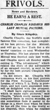 week in his newest Mutual-Chaplin picture, the last of the famous