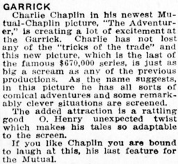 & Chas. Chaplin in „The Adventurer“ at the Garrick