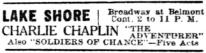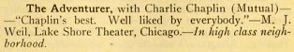„Chaplin‘s best. Well liked by everybody.“ M. J. Weil, Lake Shore Theater, Chicago. – In high class neighborhood.
