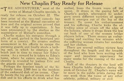 Chaplin‘s forthcoming comedy, The Adventurer, has been