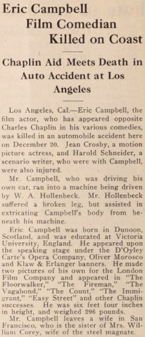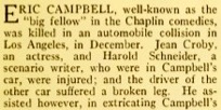 & Eric Campbell Film Comedian Killed on Coast